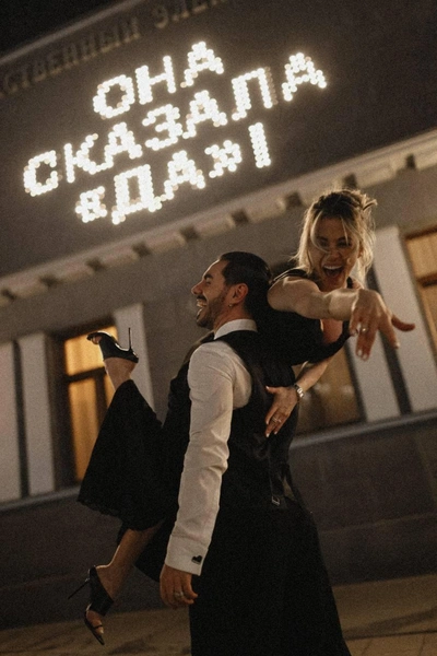 На снимке над парой сияет фраза: «Она сказала да!» Эта новость мгновенно разлетелась по всем социальным платформам, собрав множество поздравлений от друзей и поклонников.