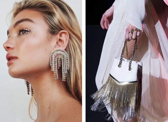 - Сверкающие сумки и клатчи. Если Новый год ты решила встретить в маленьком черном платье и не знаешь, как бы его обыграть и сделать нарядным, то срочно покупай небольшую сумку или клатч с глиттером, плетеную из бисера или жемчуга, с кристаллами или со сверкающей бахромой. Всего один этот аксессуар сделает твой образ по-настоящему праздничным. Дополни образ соответствующими украшениями — со стразами или с жемчугом, добавь пару кристаллов в макияж или маникюр.