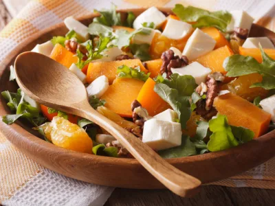 Салат с хурмой, рукколой и грецкими орехами: пикантный вкус